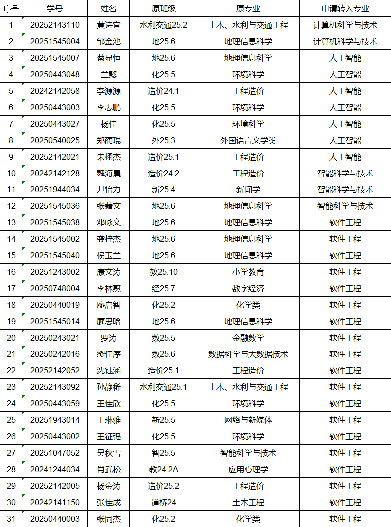 请以上同学带好有效证件(学生证或者身份证)按时参加我院转专业笔试:2025年12月18日下午2点,明德楼B206。