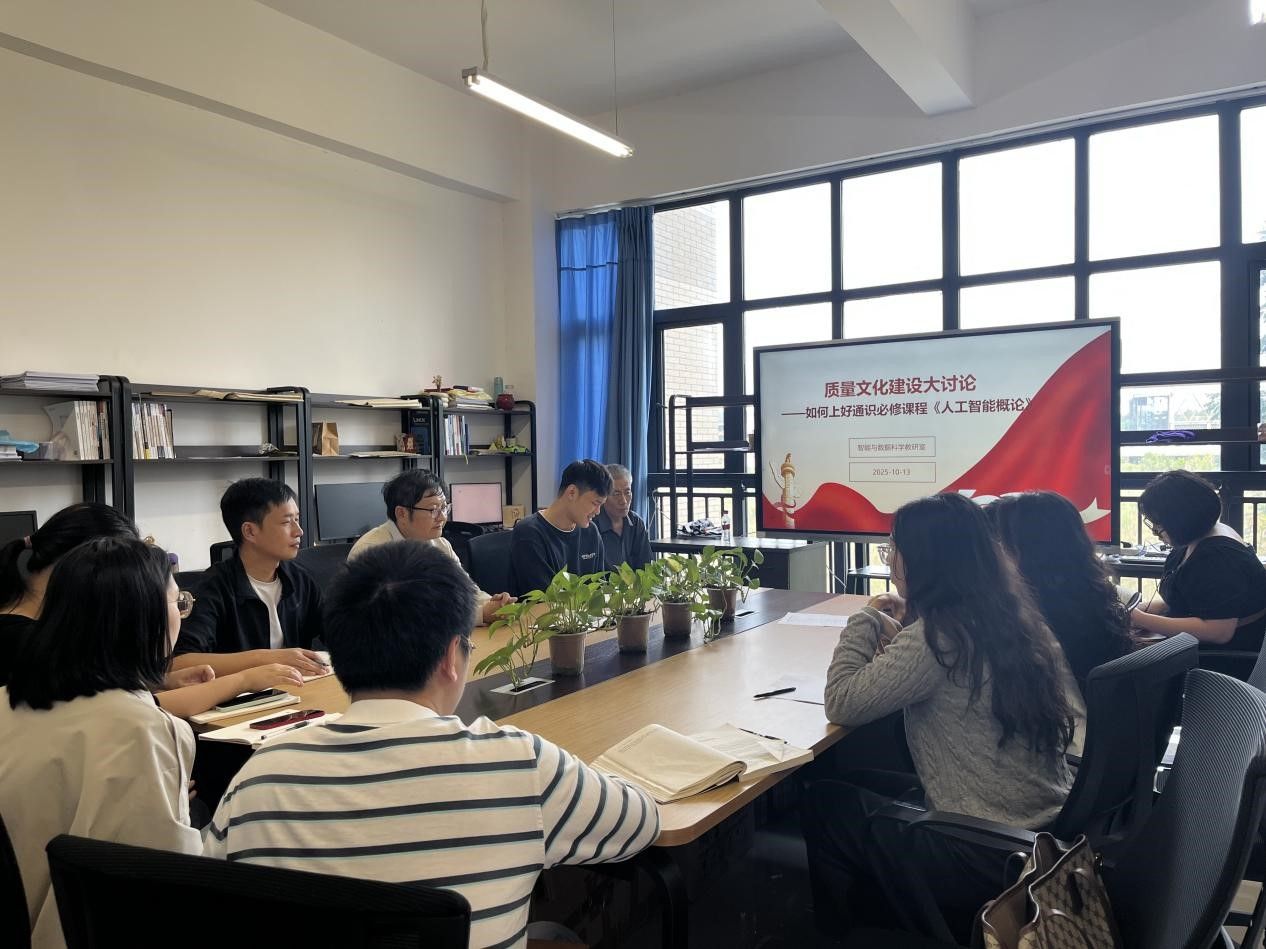 2025年10月13日,智能与数据科学教研室聚焦教学核心环节,围绕“质量文化建设大讨论——如何上好通识必修课程《人工智能概论》”这一主题,成功召开了专题教学研讨活动。本次活动旨在深入探讨通识课程的教学质量提升路径,凝聚教学智慧,统一质量标准,以扎实举措推动教研室内部质量文化的形成与巩固。教研室全体授课教师及部分对通识教育感兴趣的专业教师参加了本次深度研讨。