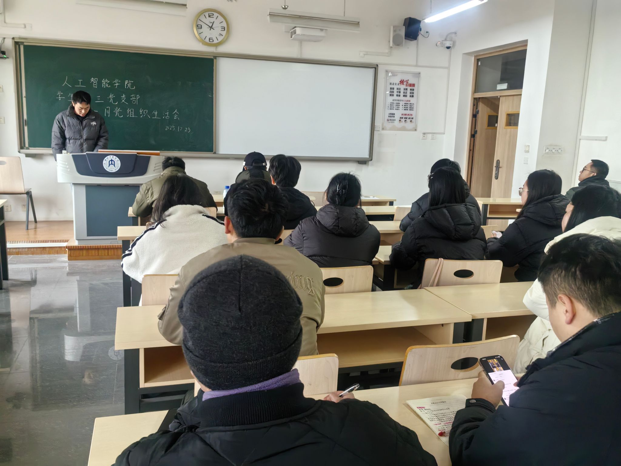 为深入学习贯彻习近平新时代中国特色社会主义思想,深刻领会习近平总书记关于发展新质生产力的重要论述,把握时代脉搏,明确青年使命。2025年12月23日,人工智能学院学生第一党支部、第二党支部、第三党支部分别在明德楼B215、B216、B217开展党组织生活会,会议由三位支部书记廖新梅、林琳、周宜蓓主持,集中学习研讨《求是》杂志发表的习近平总书记重要文章《因地制宜发展新质生产力》。