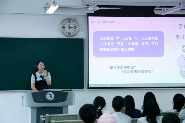 为搭建校企人才沟通桥梁,帮助学子明晰职业发展方向,我院特邀请中国工商银行四川省分行于9月17日(星期三)下午14:50在明德楼A212教室举办招聘宣讲会,22级学生参加了宣讲会。
