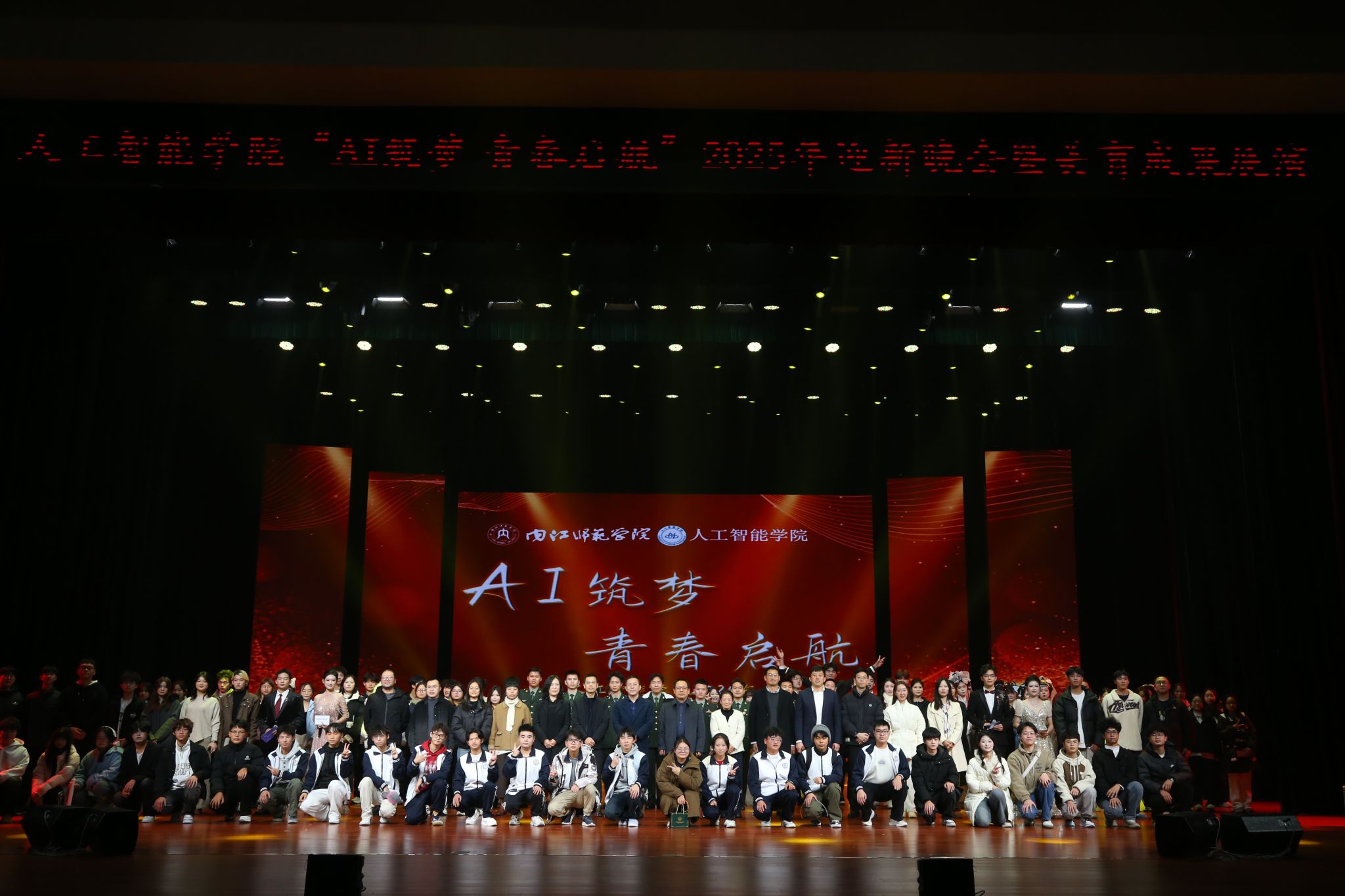 2025年11月23日晚,人工智能学院“AI筑梦 青春起航”迎新晚会在苌弘剧院盛大举办。人工智能学院党委书记于永彦,党委副书记、院长汪在荣,党委副书记蒋明芳,副院长刘丽娟,团委书记、学工办主任俞守绪以及学院部分教师,数学与大数据学院党委副书记许雷、四川网讯创智数字产业发展有限公司总经理杨宇、江苏传智播客教育科技股份有限公司成都分公司总经理龚兵等参加了晚会。