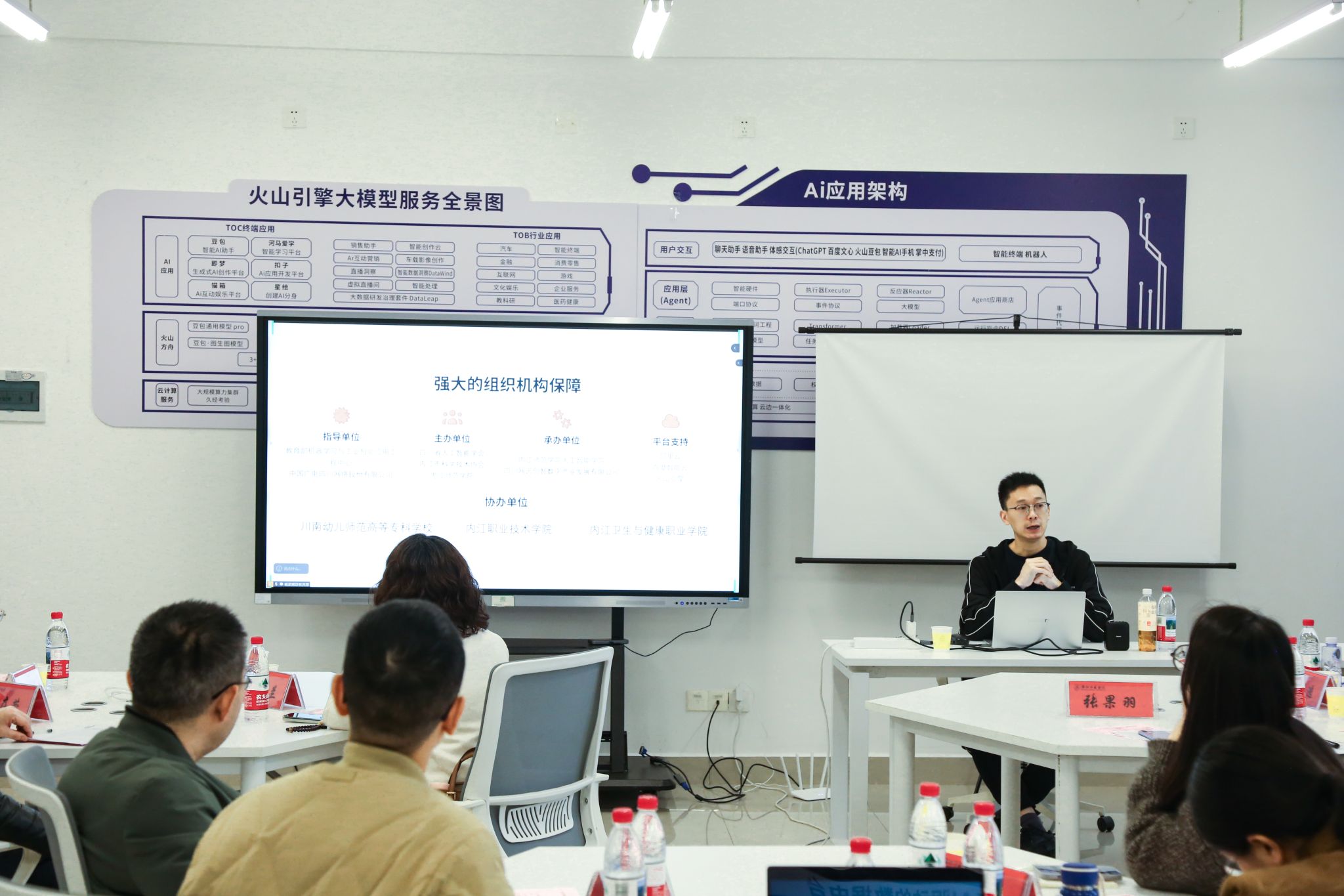 会上,四川网讯创智数字产业发展有限公司总经理杨宇、技术总监杨正辉分别对竞赛内容进行了解读。刘丽娟副院长详细介绍了竞赛组织工作进展,本次大赛将紧扣“以赛促学、以赛促创、以赛促融”目标,细化分工、密切配合,高标准完成各项工作。在交流答疑环节中,参会代表围绕赛事组织细节等关键问题进行深入研讨,积极建言献策,优化赛事流程、强化技术保障等。