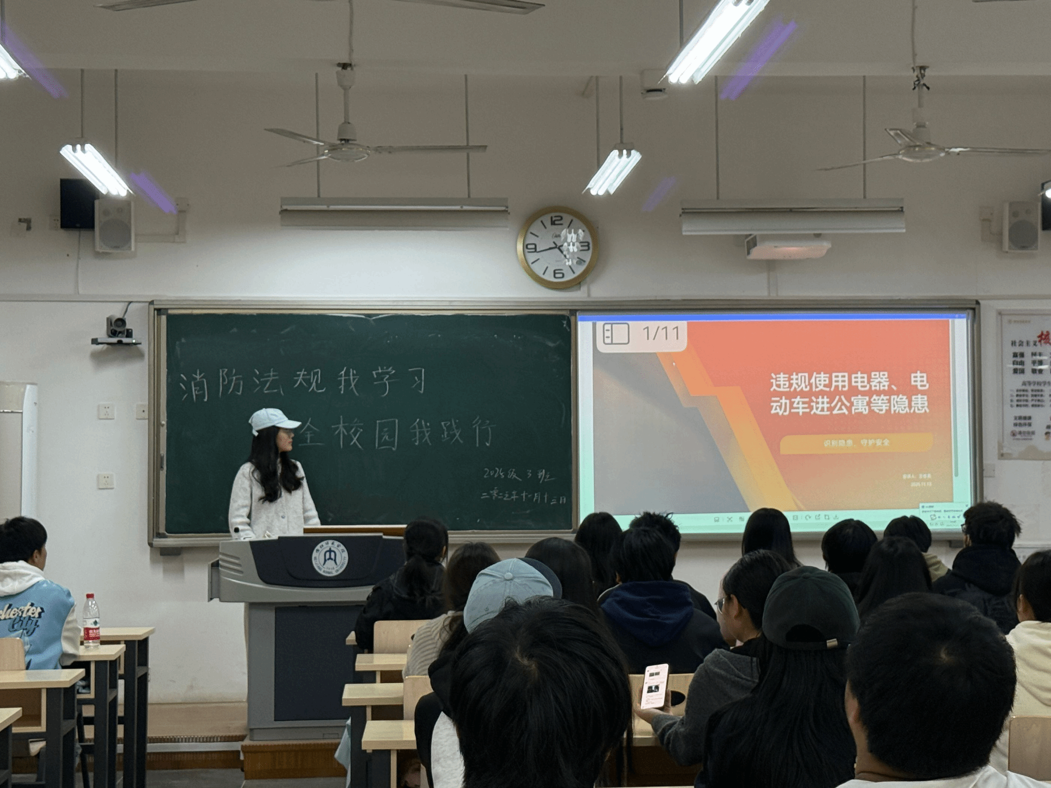 为响应“消防宣传月”号召,我院于2025年11月11日在明德楼开展“消防法规我学习,安全校园共守护”主题班会,通过法规学习、案例警示等形式强化学生消防安全意识与应急能力。