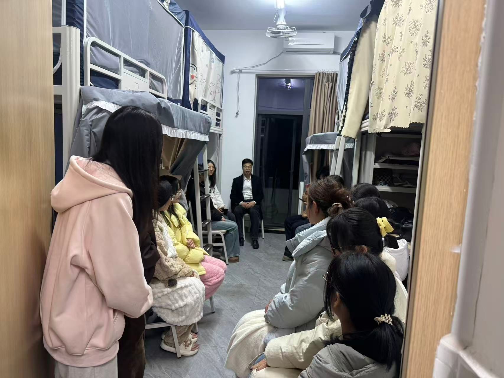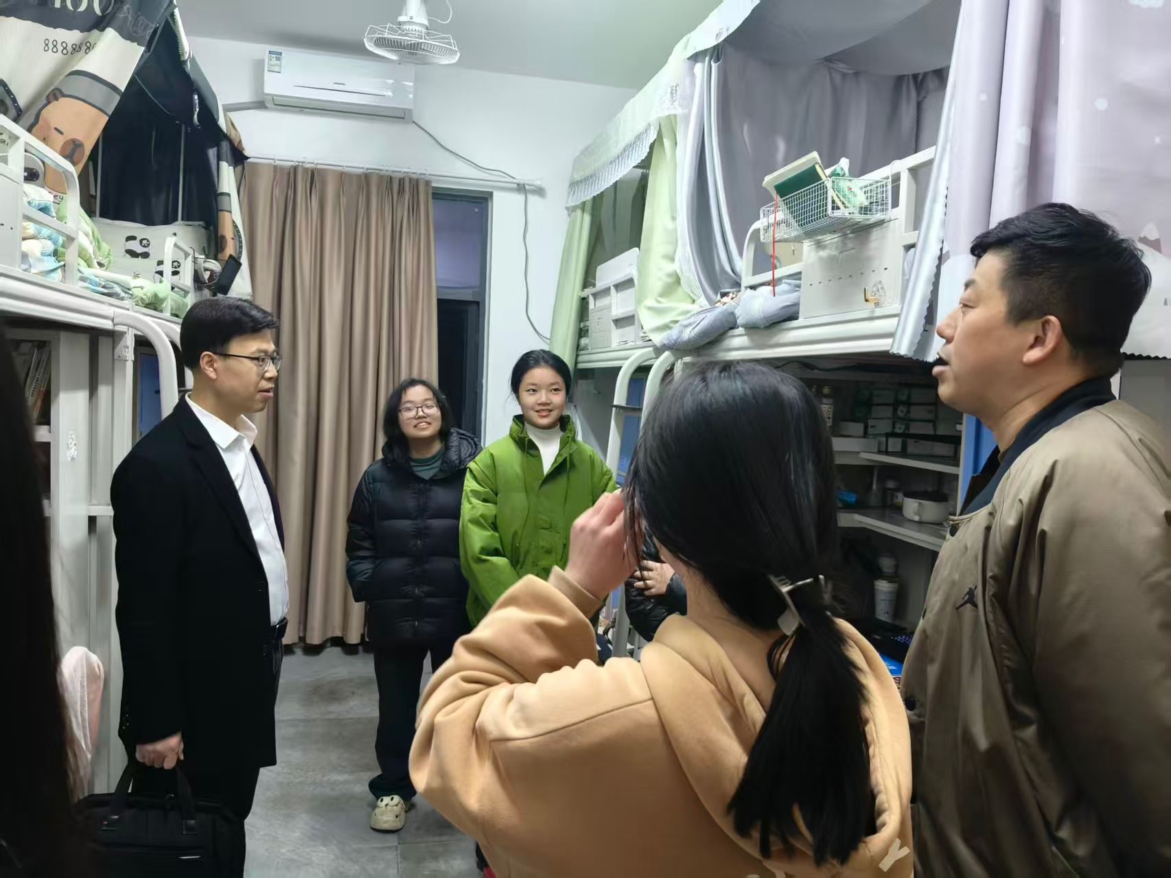 走访中,胡校长细致查看了各寝室的卫生环境、物品摆放情况和消防安全,对整洁有序的寝室予以肯定,同时叮嘱同学们要保持良好生活习惯,安全用电,营造舒适宜居的集体空间。谈及学习,胡校长鼓励同学们珍惜校园时光,常去图书馆汲取知识,明确学习目标,夯实专业基础。