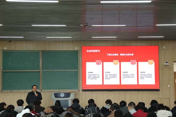 讲解环节结束后,党课设置了学生提问环节。现场同学们踊跃举手,就“如何平衡专业学习与社会实践”“新时代大学生如何找准自身定位”等问题向于书记请教,于书记逐一耐心解答,结合实际案例给出具体建议,现场交流氛围热烈,同学们纷纷认真记录要点、积极互动。