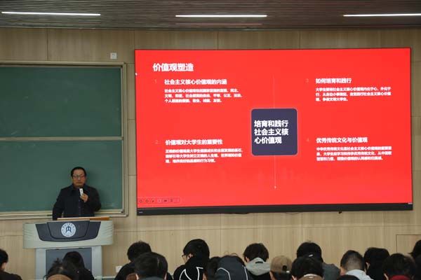 党课上,于永彦书记围绕主题展开深入讲解,先是结合时代发展背景,剖析了当下社会对大学生的新要求,从专业能力、综合素质、责任担当等多个维度,阐述了新时代大学生应具备的素养。随后,于书记针对“新时代大学生的未来展望”进行分享,鼓励同学们立足自身专业,将个人发展与时代需求相结合,在实践中锤炼本领、增长才干,寄语大家要始终保持学习热情与进取之心。