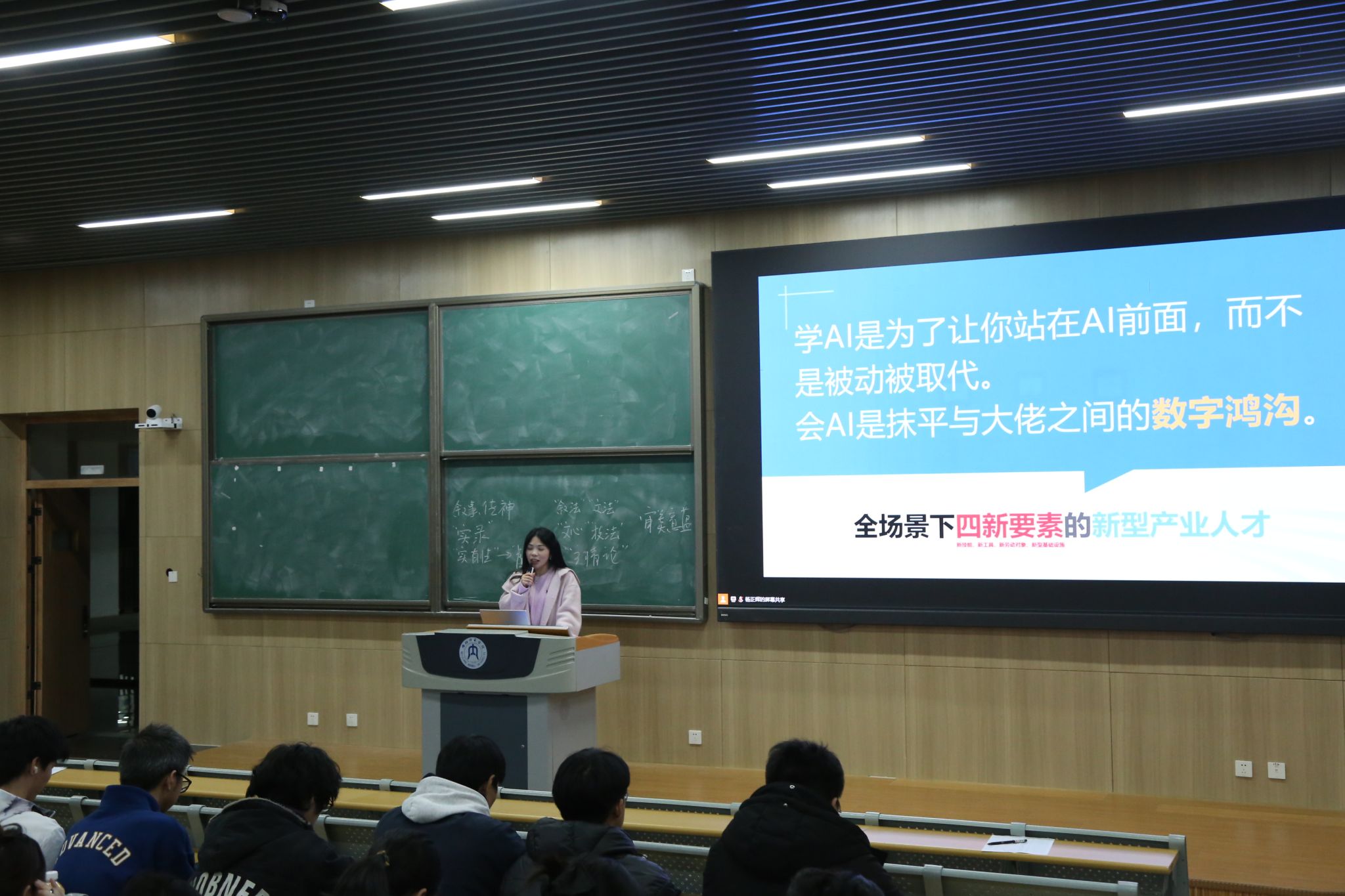 为推动人工智能与专业教育融合,助力学生把握技术趋势、提升实战能力,12月17 - 18日,我院开展“AI赋能·智启未来——AIGC浪潮下的大学生机遇与实战路径”主题讲座,面向计算机科学与技术、软件工程、智能科学与技术等专业的大二、大三学生,分四场在明德楼B111、B109教室有序开展,为同学们搭建起链接前沿技术、探索职业发展的学习交流平台。