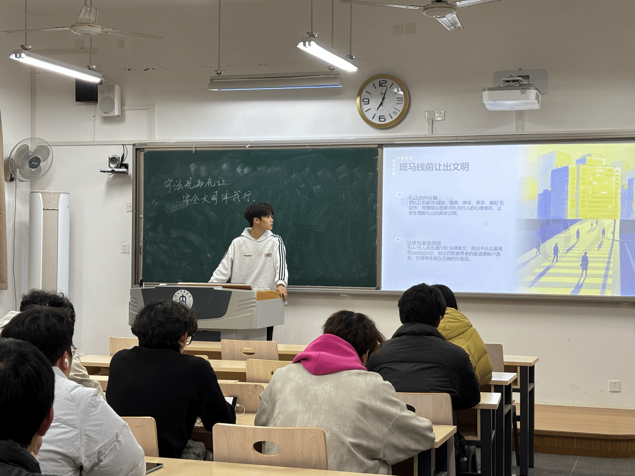 为切实增强学生交通安全意识,提高自我防护能力,营造平安和谐的校园环境,我院各班于12月2日在明德楼教室开展“守法规知礼让,安全文明伴我行”主题班会。