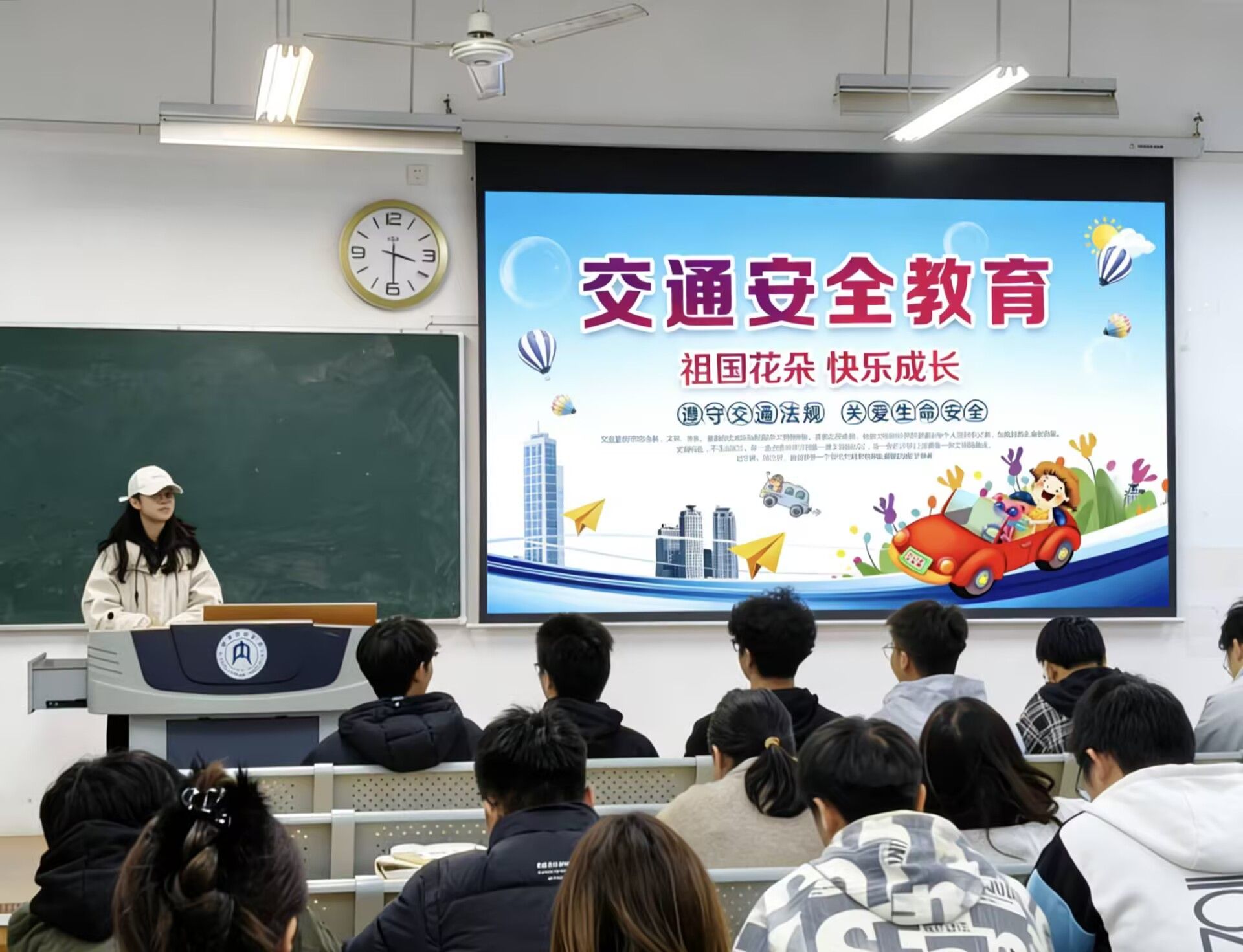 在班会中,各班班长通过PPT展示、案例分析、视频播放等多种形式,围绕校园交通状况、常见交通违法行为、出行安全注意事项等核心内容展开讲解。重点强调了骑行电动车佩戴安全头盔、过马路遵守交通信号灯、拒绝酒后骑行、不乘坐无牌无证车辆,不违规横穿马路等关键要求,结合典型交通事故案例,深入剖析了闯红灯、逆行、横穿马路等危险行为的严重后果,让学生直观感受交通安全的重要性。引导学生树立“生命至上、安全第一”的理念,自觉遵守交通规则,远离交通危险。