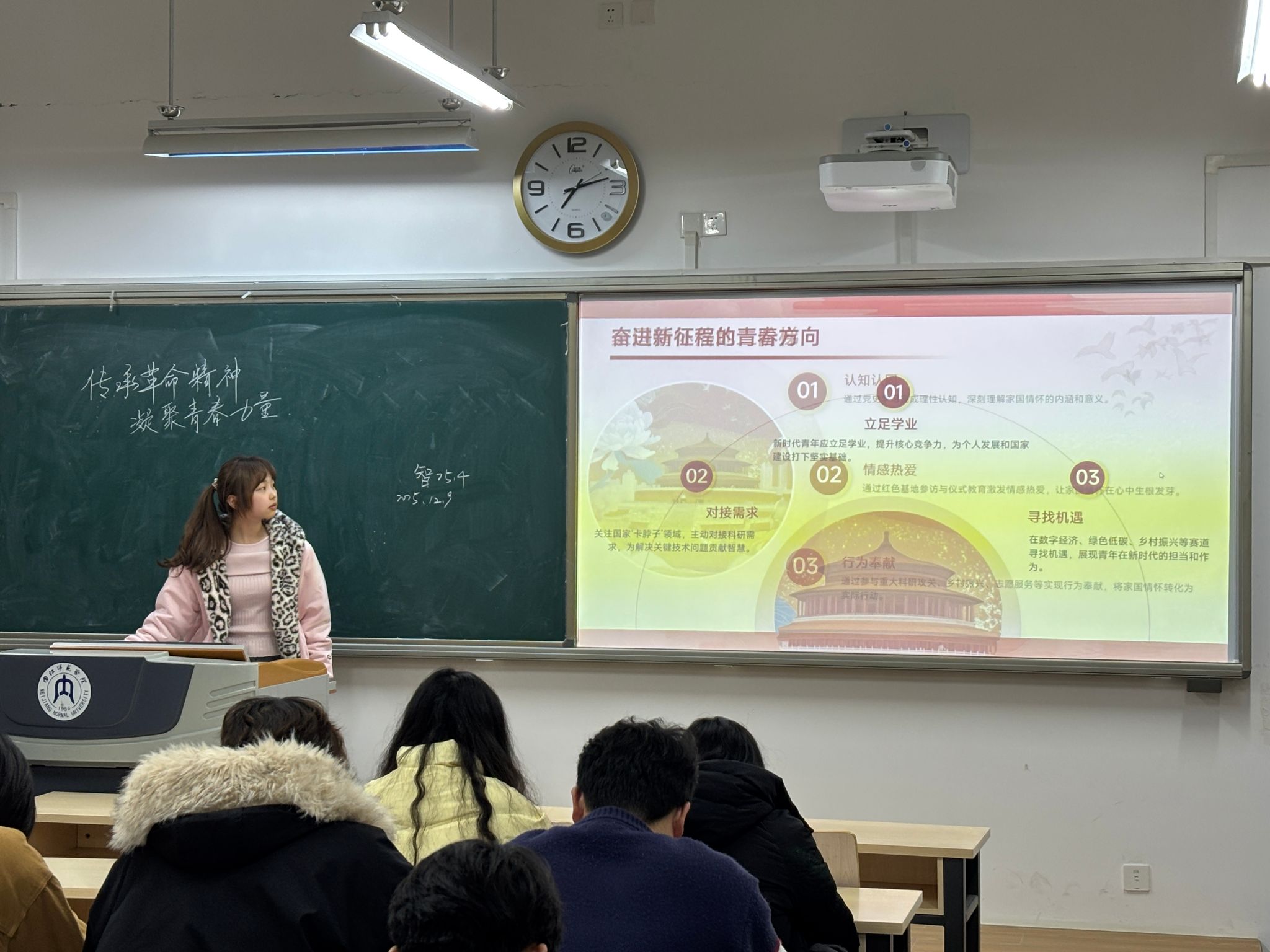 为引导青年学生深刻领悟革命精神的时代内涵,筑牢家国情怀,12月9日,我院各班以“一二·九”运动纪念为契机,在明德楼开展“青春接力:革命精神的时代觉醒”主题班会。