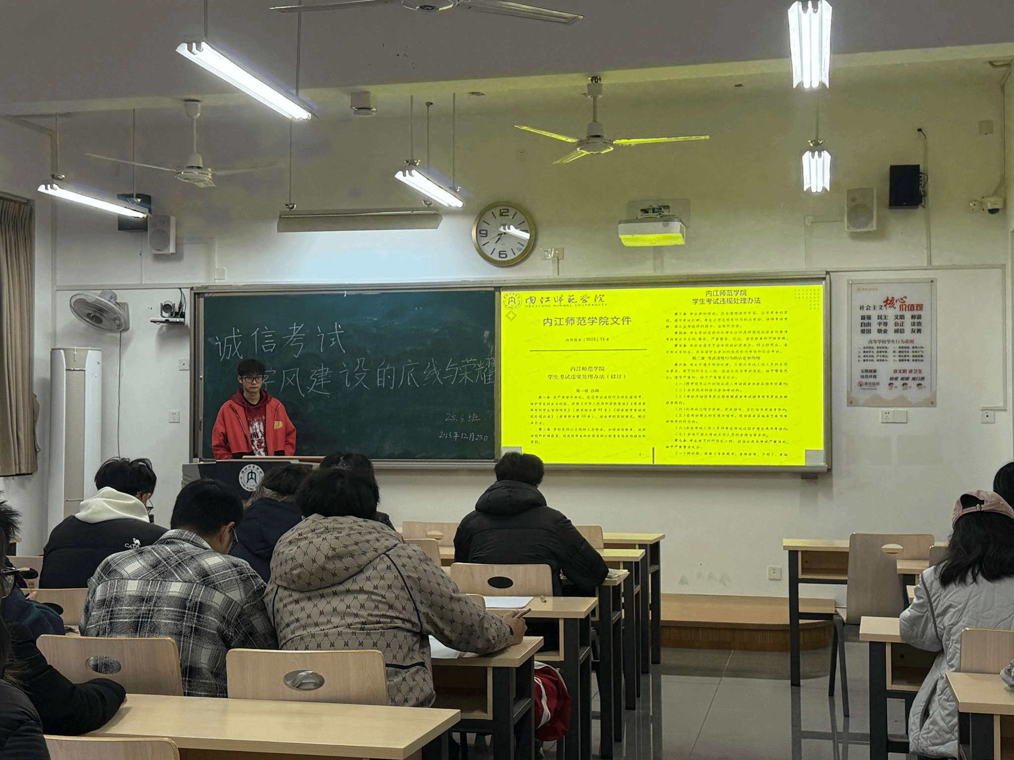 在期末考试周来临之际,为进一步增强学生诚信意识,营造公平公正的考试环境,人工智能学院各班于12月27日在班长的组织下,于明德楼召开了“诚信考试”主题班会。