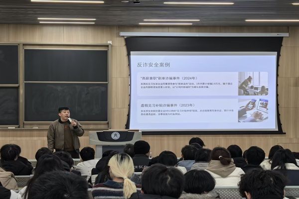 随后,俞主任围绕见习安全展开专题讲解。他结合反诈、用电、出行等领域的典型案例,深入剖析了“高薪兼职”刷单诈骗、虚假见习补贴诈骗、宿舍违规用电等潜在安全隐患,提醒同学们务必遵守交通规则、提高反诈意识、规范使用电器。此外,俞主任还就见习单位的规章制度、岗位安全操作规程等内容进行了详细说明,要求大家尽快熟悉见习环境、严格执行操作规范,若遇特殊情况需第一时间向相关负责人报备。